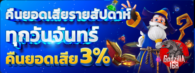 Godzilla88 คืนยอดเสีย 3% ทุกวันจันทร์